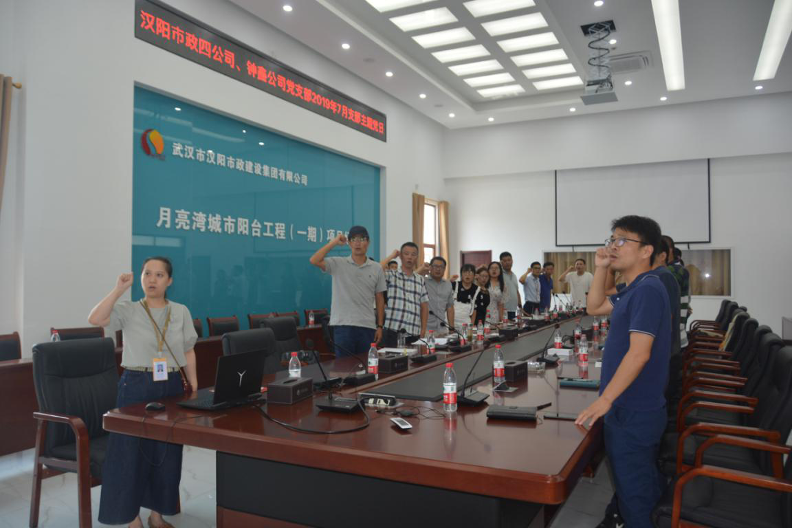 ? ? ? 活動伊始,盧永紅同志通報了黨員到會人數(shù)以及黨費繳納情況。緊接著,全體黨員起立合唱國歌,洪亮的國歌聲響徹了會議室,黨員昂首挺胸、莊嚴(yán)肅穆。隨后在后勤黨小組組長劉艷新同志的帶領(lǐng)下,全體黨員重溫了入黨誓詞,現(xiàn)場施工黨小組組長張云同志則帶領(lǐng)全體黨員重溫了《黨章》。