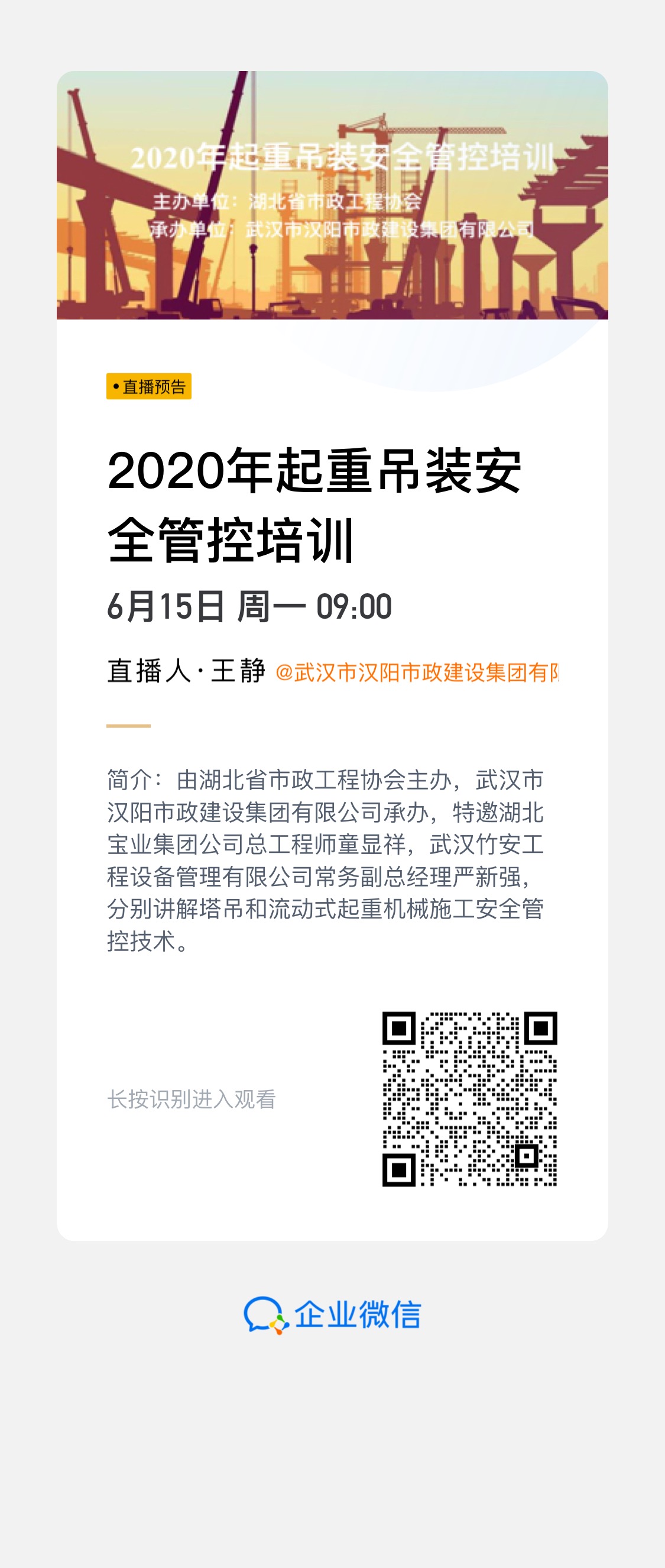 ? ? ? 培訓(xùn)采用現(xiàn)場授課與企業(yè)微信線上同步直播的方式進行。線上直播在組織內(nèi)部人員觀看的同時,還通過湖北省市政工程協(xié)會線上平臺,吸引了更多同行管理人員的觀看,累計共有604人次觀看。