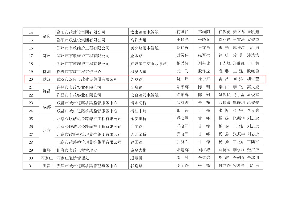 2017-2018 年度全國“城鎮(zhèn)市政養(yǎng)護示范設(shè)施”創(chuàng)建活動—— “扁鵲杯”獎獲獎名單(部分)