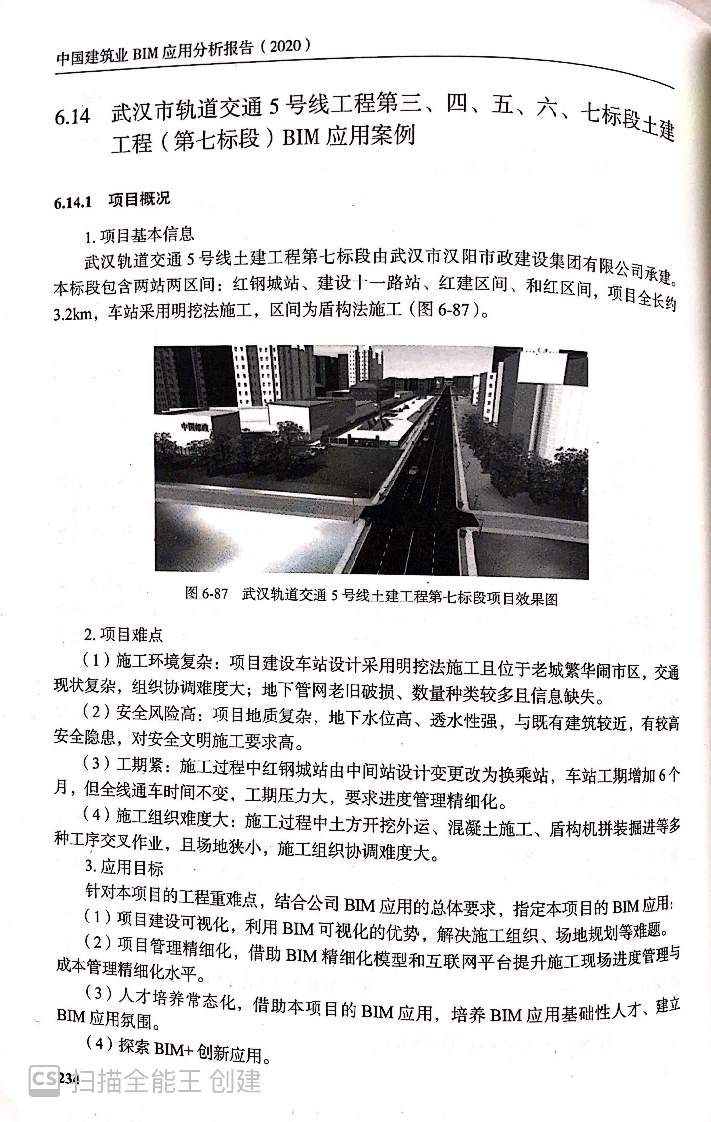 《報(bào)告》第6章BIM技術(shù)應(yīng)用典型案例匯編章節(jié)中,以漢陽市政四公司承建的“武漢市軌道交通5號(hào)線第七標(biāo)段土建工程BIM技術(shù)應(yīng)用成果”為典型案例,進(jìn)行展示與分析。此章節(jié)從項(xiàng)目概況、BIM應(yīng)用方案、BIM實(shí)施過程、BIM應(yīng)用效果總結(jié)四個(gè)方面,對(duì)5.7標(biāo)項(xiàng)目BIM技術(shù)應(yīng)用情況進(jìn)行了全面且詳細(xì)的介紹。