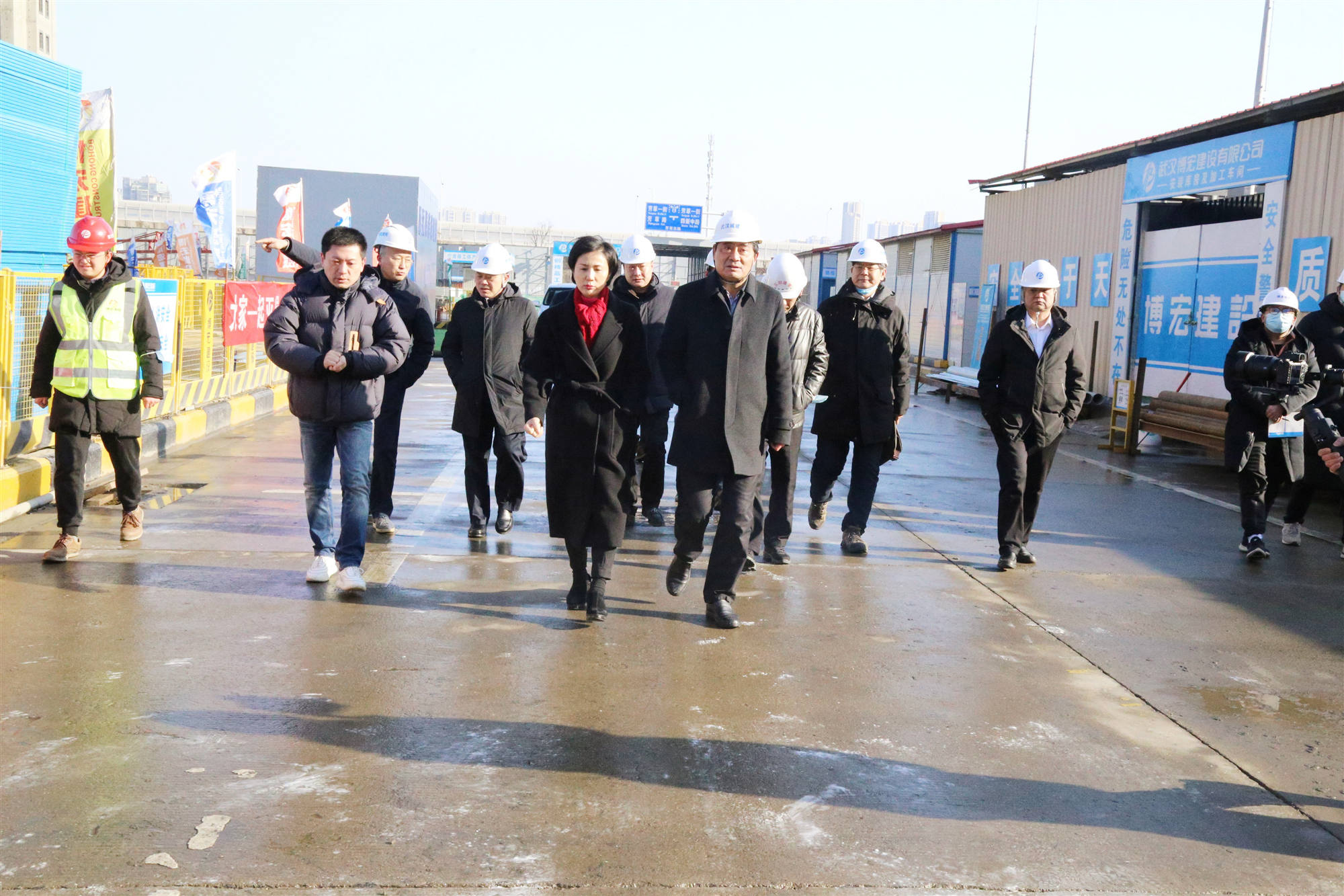 12月30日上午,由漢陽(yáng)市政博宏公司承建的漢陽(yáng)市政建設(shè)大廈迎來一次工地現(xiàn)場(chǎng)安全生產(chǎn)檢查,這是漢陽(yáng)“工地革命”調(diào)研工作的第一站。武漢市城建局黨組書記、局長(zhǎng)夏平,黨組成員、副局長(zhǎng)榮先國(guó),質(zhì)安處、建管處、安全站主要負(fù)責(zé)人;漢陽(yáng)區(qū)委書記徐麗,區(qū)政府副區(qū)長(zhǎng)蔡松,區(qū)建設(shè)局等相關(guān)單位負(fù)責(zé)人參加調(diào)研檢查,漢陽(yáng)市政黨委書記、董事長(zhǎng)嚴(yán)悌文等陪同調(diào)研。