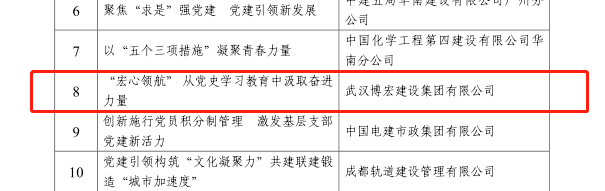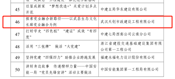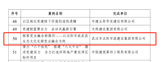 近日,中國施工企業(yè)管理協(xié)會發(fā)布《關(guān)于推廣工程建設(shè)企業(yè)黨建工作最佳案例和優(yōu)秀案例的通知》,漢陽市政3項黨建案例榜上有名。其中,《探索黨業(yè)融合新路徑—以漢陽市政武昌生態(tài)文化長廊黨業(yè)融合為例》成功入選工程建設(shè)企業(yè)黨建工作最佳案例,《探索黨業(yè)融合新路徑—以武昌生態(tài)文化長廊黨業(yè)融合為例》《“宏心領(lǐng)航”,從黨史學(xué)習(xí)教育中汲取奮進(jìn)力量》入選工程建設(shè)企業(yè)黨建工作優(yōu)秀案例。