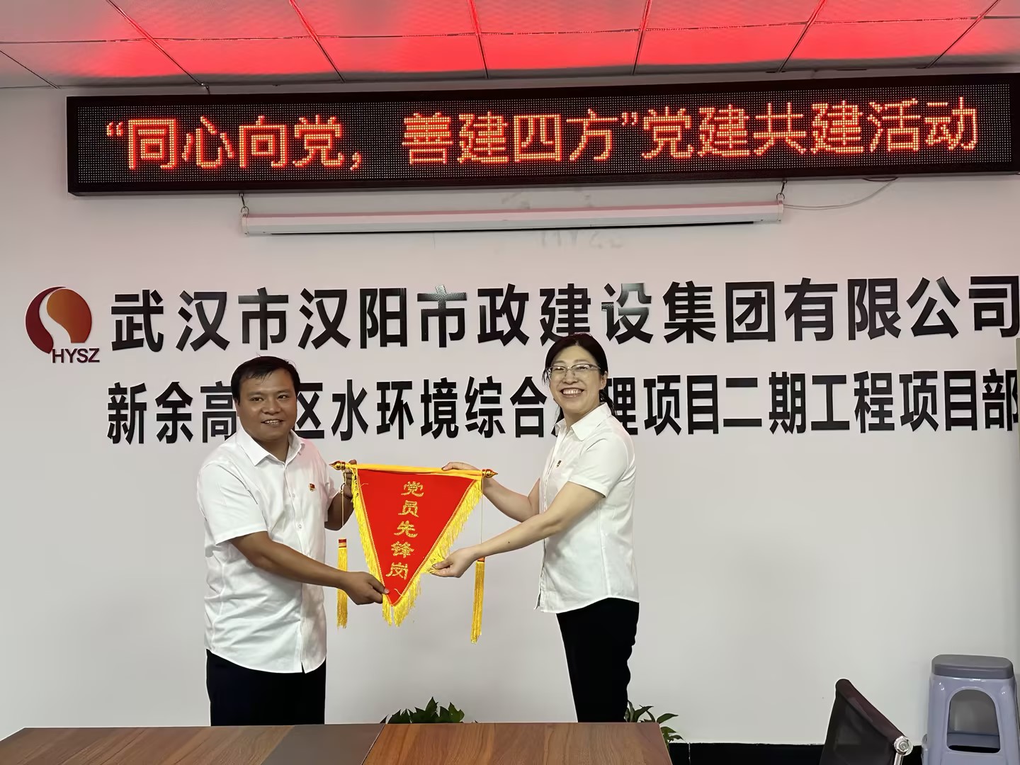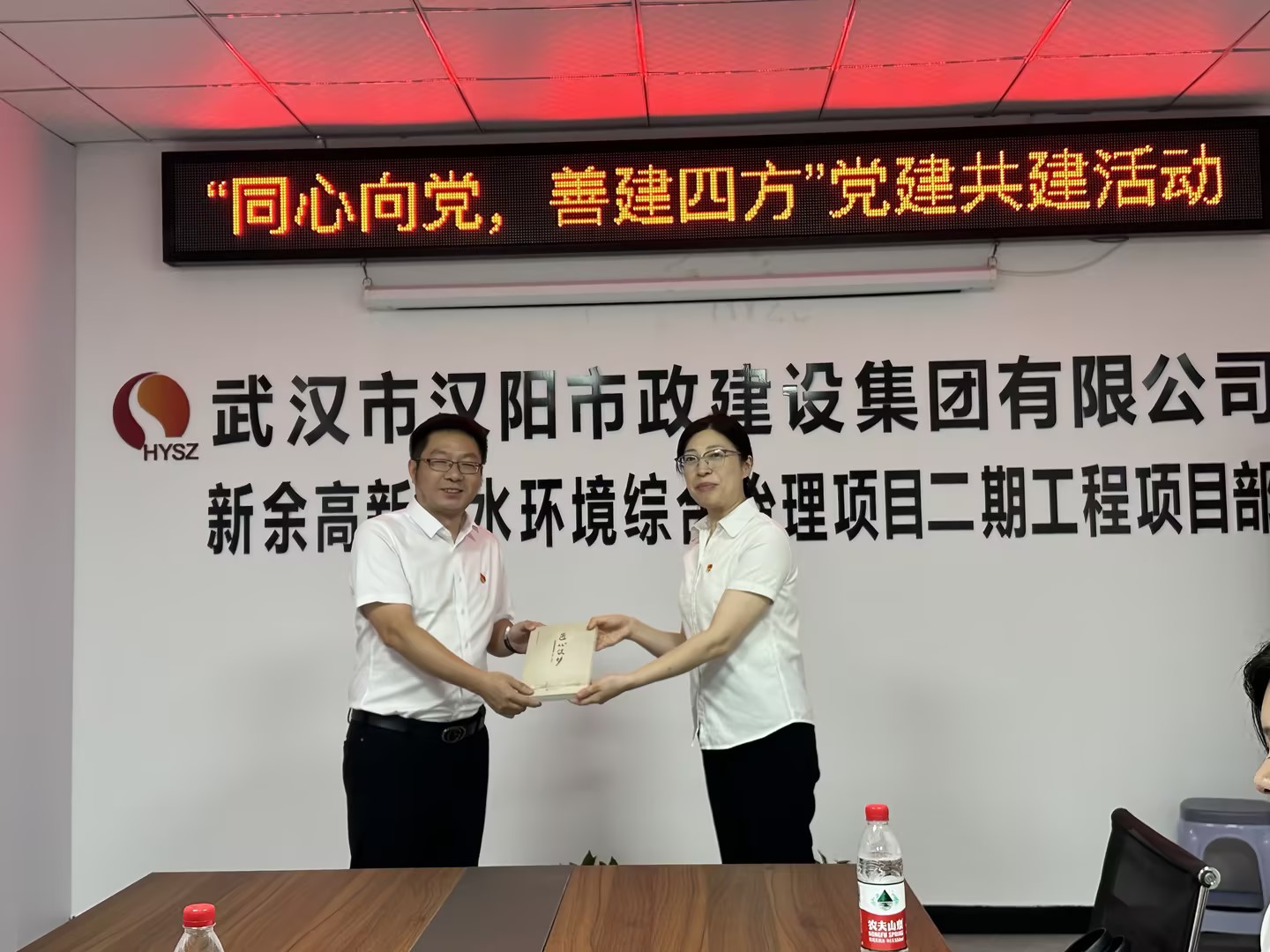 7月26日,漢陽市政七公司與新余市高欣集團在新余水環(huán)境二期項目聯(lián)合開展“同心向黨,善建四方”黨建共建活動。新余市高欣集團黨委委員、晟投公司副總經(jīng)理涂培卿,新余市高新區(qū)城鄉(xiāng)建設(shè)服務(wù)中心副主任熊偉平,漢陽市政七公司支部副書記胡瑜及副總經(jīng)理李剛出席活動。漢陽市政七公司與新余市高欣集團相關(guān)部門負責人及項目部員工代表參加活動。